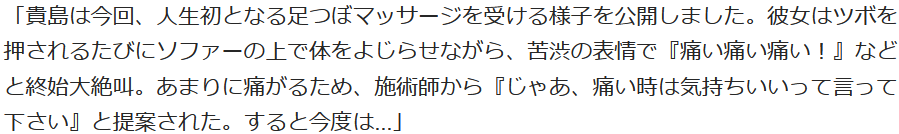 男性ファンは足つぼ施術師にやきもちをやいたことでしょうね(笑)
