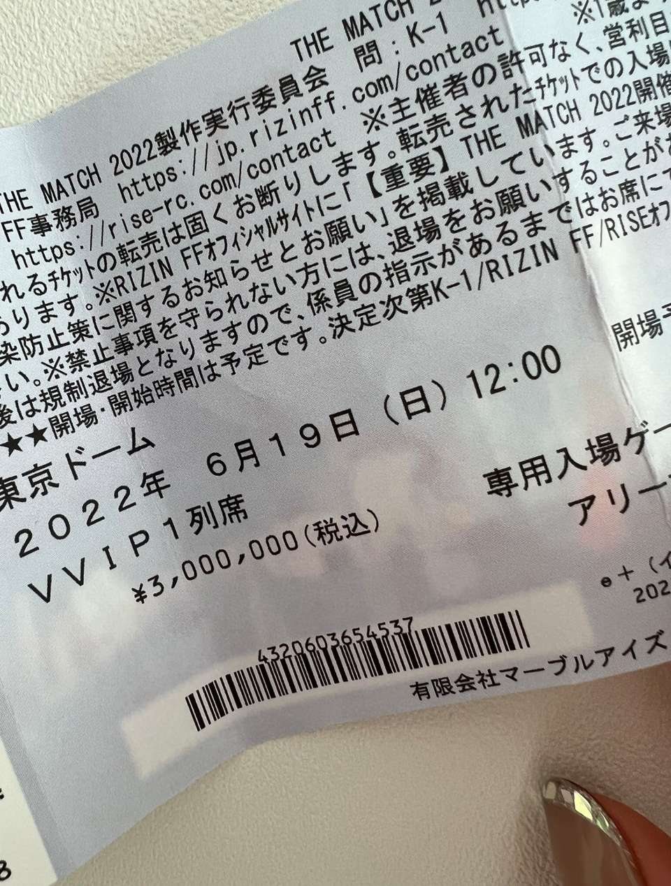 ツーショット写真のほかにも『VVIP1列席 3,000,000(税込)』と書かれたチケットの半券の写真もアップしました。