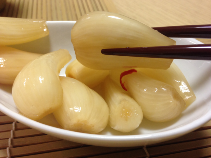 5kgに水カップ3と2分の1、酢カップ2分の1、塩45gで漬け込みます。下準備で洗ってヒゲ根と茎を切り落としたらっきょうを保存容器に入れ、水と酢、塩を入れて10日ほど置きます。歯ざわりと香りが良く、とても食べ易いと思います。同様に醤油カップ2分の1とみりんカップ1、酢カップ2分の1と漬け込んだ醤油漬けのアレンジも可能です。これら漬け込んだ後、そのまま食べることも良いのですが、茹でた鶏のささみとサラダにしたり、豚肉と一緒に炒めてもメイン料理として利用することもできます。