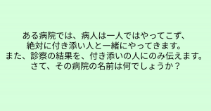 ある病院では、病人は一人ではやってこず、絶対に付き添い人と一緒にやってきます。