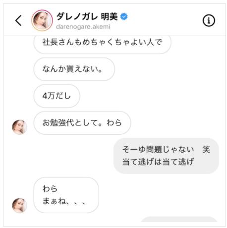 投稿にはダレノガレと直接連絡を取った際のスクリーンショットも載せられていたのですが…