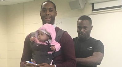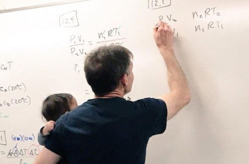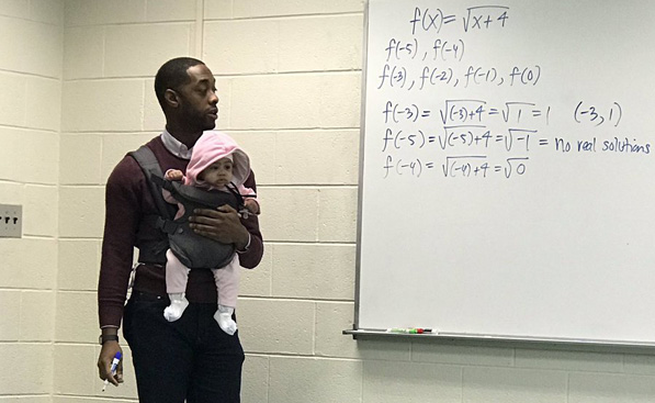 それはアメリカ・アトランタの大学での出来事。男子学生のウェイン・ヘイヤーさんは、中間試験を控えて1日の代数の授業をどうしても欠席したくありませんでした。しかし、5ヶ月になる娘の保育所を見つけることができなかったため、やむを得なく子連れで通学したんだそうです。事情を聴いたこちらのネイサン・アレクサンダー教授、子連れのヘイヤーさんを見て驚きの行動に出ます。なんと、娘を抱っこひもで胸に抱いた姿で授業を続けたのです。つまり、自ら子守りを買って出たのです。