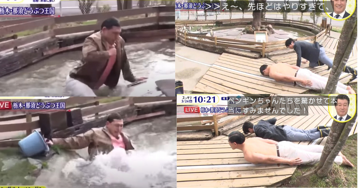 《ペンギンとしては自分よりも遥かに大きな生き物が突然池に飛び込んで来たら、それはもう身の危険を感じるでしょうね。 いくら事前打ち合わせが有ったとはいえ、池に落ちる事に不快感を感じる方も居るはずです。 ダチョウ倶楽部のように周りに迷惑をかけないような状況ならともかく、公共の場でしかも動物園…アイディアを出した方の考え方がもう時代に即していないのではないかと思います。 ドッキリ番組と同じで、予定調和だと思っているのは作り手側のみだと感じます。》