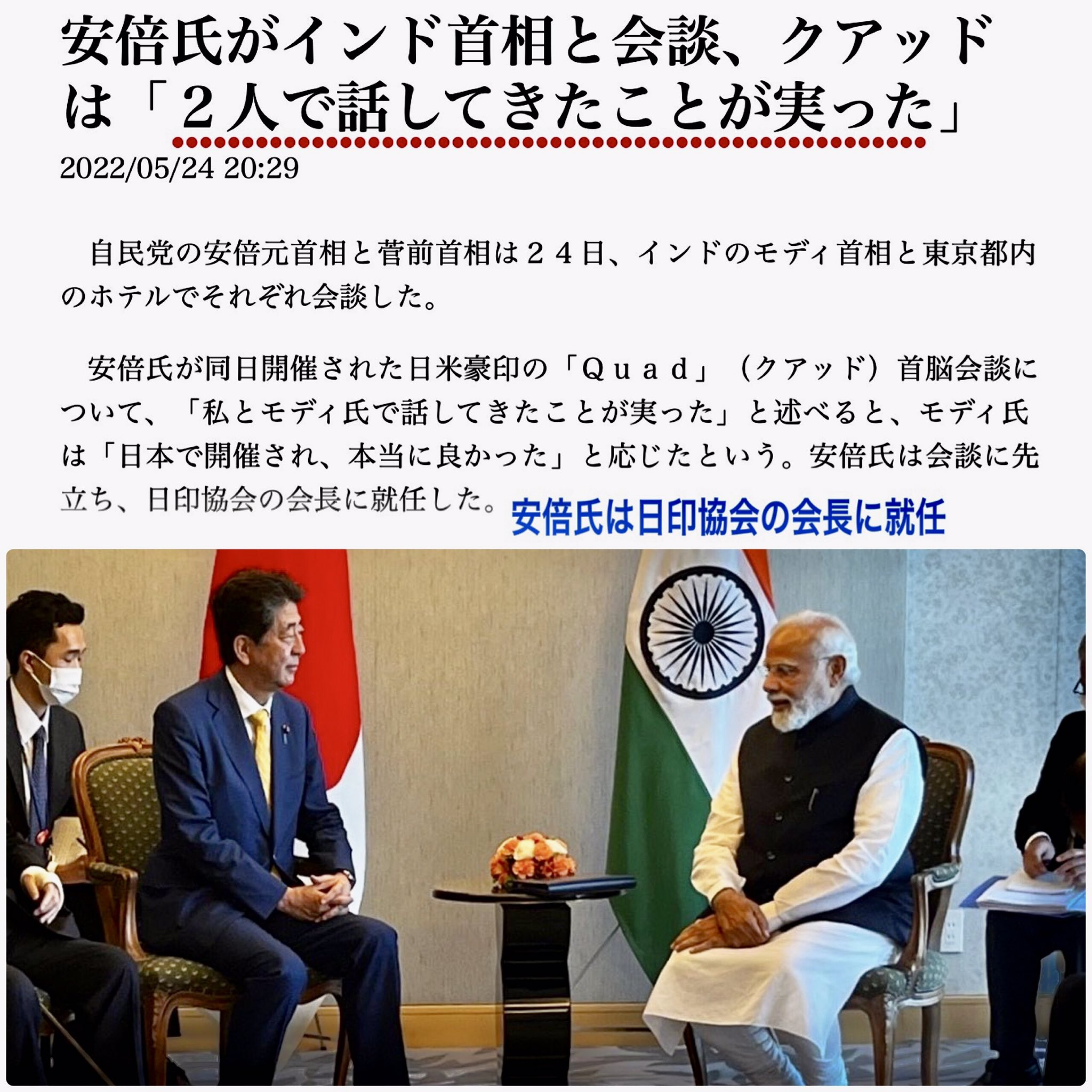 日豪経済連携協定の締結や日米豪印の4か国による枠組み「Quad」(クアッド)の創設などを高く評価しているほか、世界中に大きな影響を及ぼした「自由で開かれたインド太平洋」の提唱などを安倍氏の功績として挙げています。