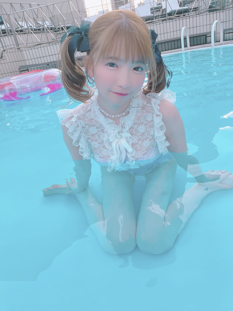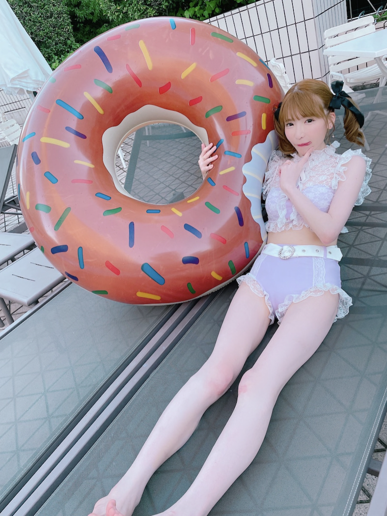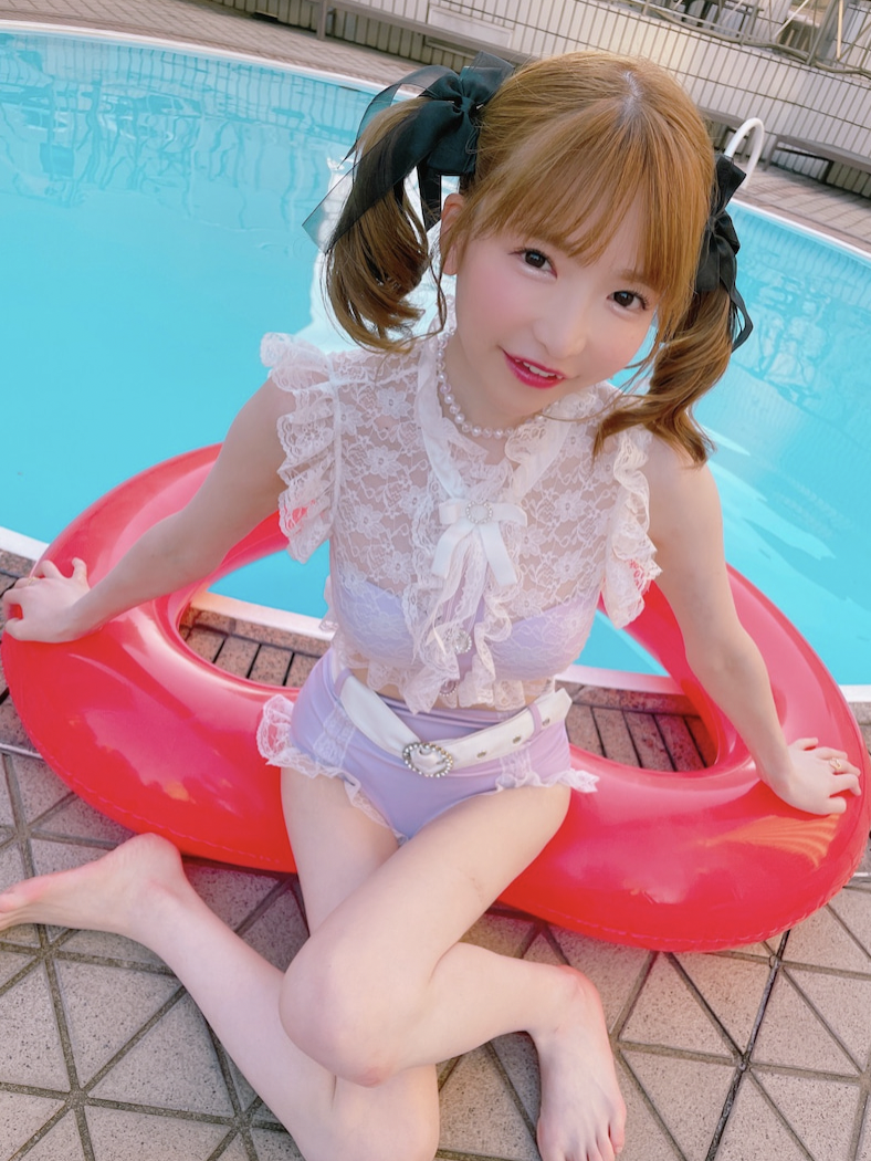 この日、もえあずは「今年の夏も 水着きたよ〜」と綴り、プールに入る自身の水着ショットを公開しました。さらに「今年は露出抑えて レースでかわいい感じ」と自身の水着について説明。プールサイドでハート型の浮き輪を持つ姿や全身ショットなどを公開しました。