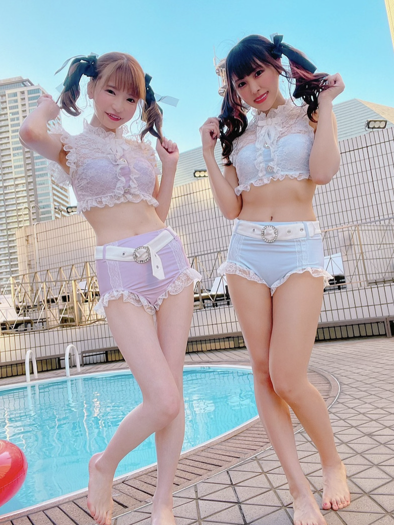またプールには、アイドルグループ・バクステ外神田一丁目の熊本美和さんと一緒に行ったようで、“みい”こと熊本美和さんと色違いの水着を着た2ショットも公開しました。