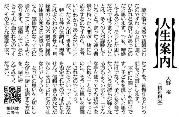 このお悩みにアドバイザーとして回答するのは精神科医の大野裕先生です。