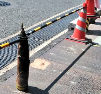 三角コーンと背丈が揃った大きなタケノコの姿が!!!