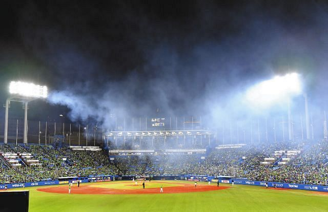 中日が攻撃中の六回途中に花火が打ち上がり、風に乗った煙が球場のグラウンドにも漂いました。ヤクルト-中日戦は小川泰弘投手が登板していた 6回表2死一塁の場面で 1分間の中断などがあったという。球審がタイムをかけ、約1分後に再開したものの、さらに大量の風船が飛来したため、係員が風船を拾う間、再びプレーが止まってしまいました。