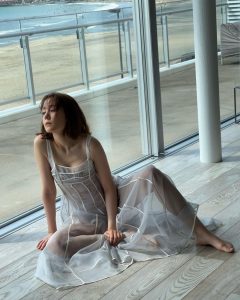 透け透けシースルードレスを身にまとい、大胆な開脚で美ボディがあらわ、アンニュイな表情が印象的な1枚となっています。