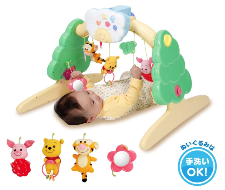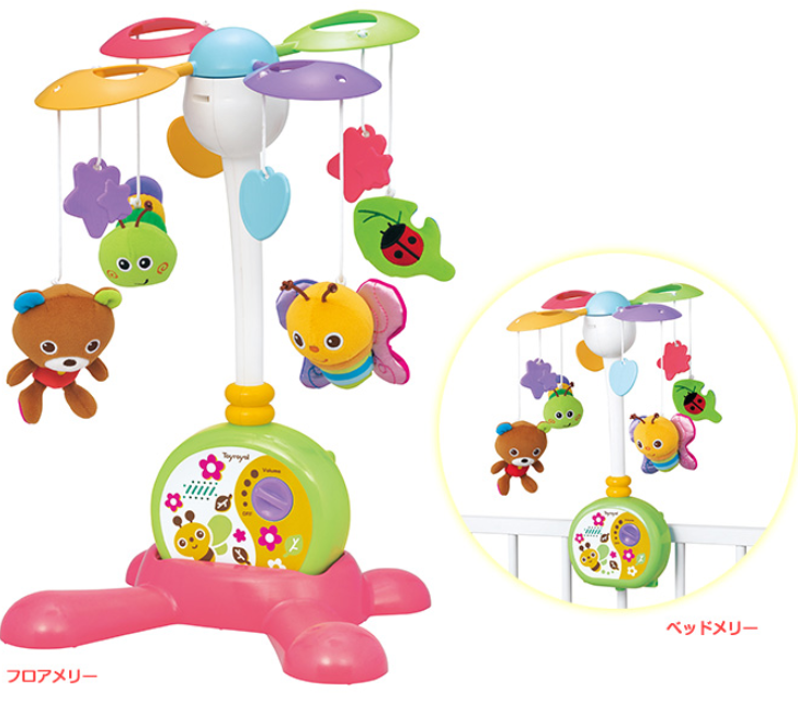 特徴(1)乳幼児期、成長に合わせて長く使える。(2)床でもベッドでも2WAYタイプ。(3)ぬいぐるみは全て取り外し可能で、ラトル遊びが楽しめて、手洗いもできる。(4)くまさんのラトルは鈴入りでリンリンと音がする。(5)安心タイマー付き(6)8曲内臓・キラキラ星/ブラームスの子守唄/メリーさんの羊/オーホエア、オーホエアハズマイリトルドッグコーン/オールドブラックジョー/マイボニー/リトルボーイブルー/いとしのクレメンタイン。音が良いというレビューもありますが、電池の消耗が早いという声もあるようなので、充電池を使用するなどの工夫が必要かもしれませんね。