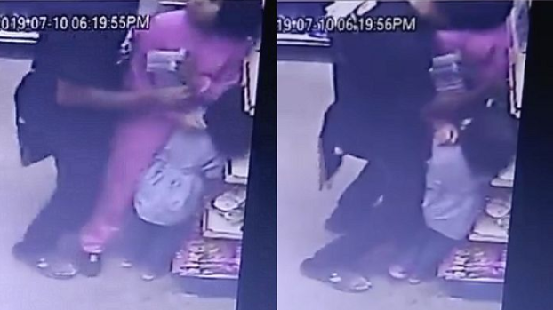 男性はお菓子コーナーに向かう少女二人に近寄り、まずはピンクの服を着た姉妹の姉らしき少女に抱き着きに行きます。その後、自身の〇器を少女のお尻に当てつけ、腰を振る映像が確認できたといいます。