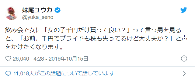 世にあふれる男女をぶった斬る芸風でファンとアンチを増やしています。コラムニストとしては女性向けの恋愛ネタを得意としており、最近では〝飲み会1000円発言〟が賛否両論を巻き起こしました。ネットニュースでも大きく取り扱われ、注目されていました。