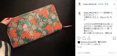 今月、10月24日に35歳となる誕生日を迎えていた木村さんは、夫であり俳優の瑛太さんからのプレゼントとして、高級ブランド「GUCCI」の財布を紹介していました。そのお財布はなんと、木村さんのデビュー15周年記念アルバム「いちご」にちなんだ“いちご柄”の財布!