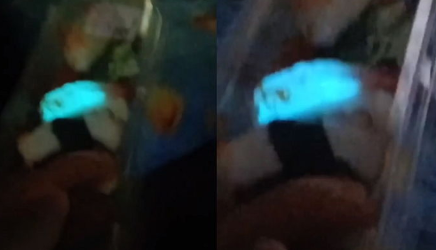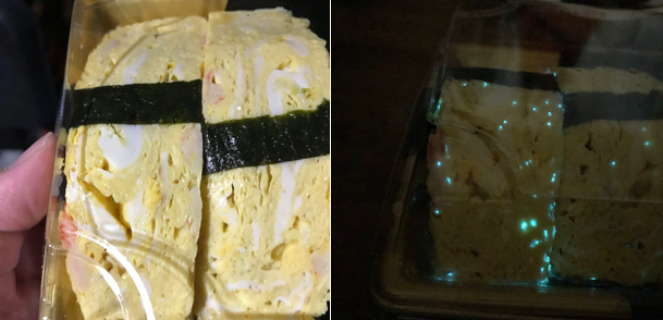 このようなことは、日本でも多く見られていたようです。購入した寿司を何日か置いておくと、同じく発光菌が繁殖し同じような現象が起きるようです。何日も置いたお寿司を食べようとは思いませんが、食べる前に一度電気を消して確認することも可能のようですね。
