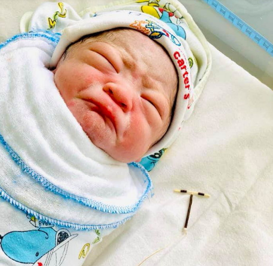 生まれたての赤ちゃんの手に避妊具が?