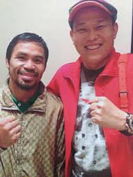 普通の人なら試合を終え疲れて眠っているであろうパッキャオを気遣ってそのまま帰るところですが、こともあろうにせいじはスタッフの静止をふりきりパッキャオの部屋へ突入。関西弁でまくし立ててパッキャオを起こすと、記念写真を撮って嵐のように去っていったとのことです。その時の写真はこちら。