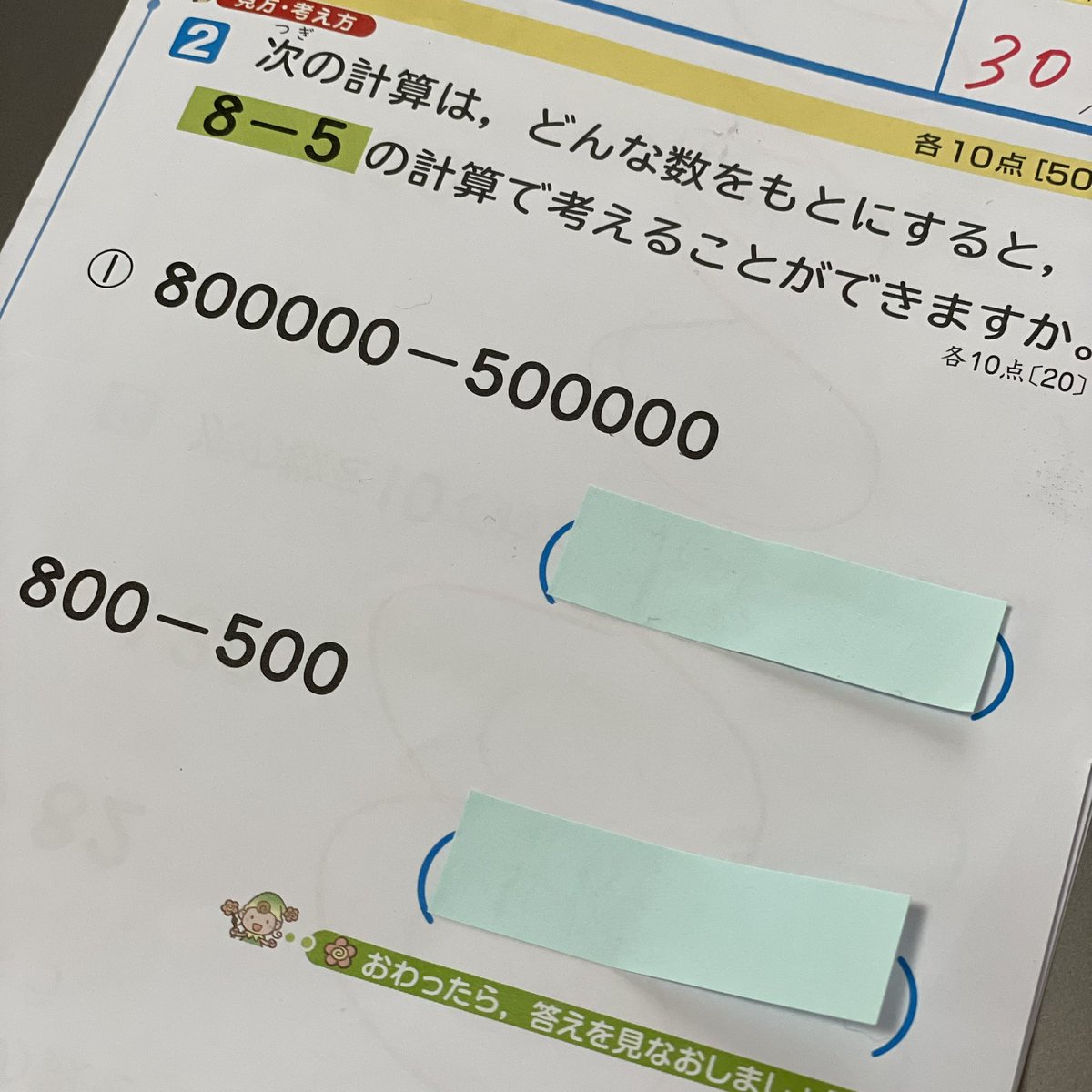小学3年生の算数のテスト。