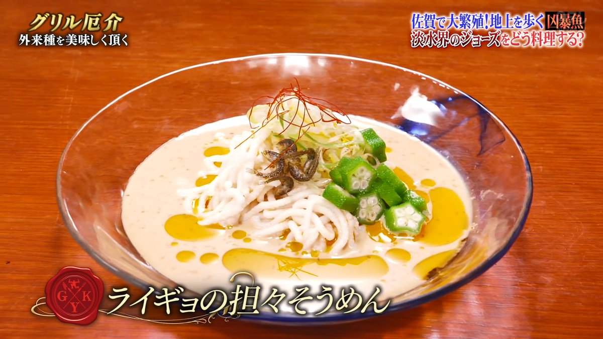 物議を醸したのは、最後に提供された「ライギョの坦々そうめん」の調理シーンです。