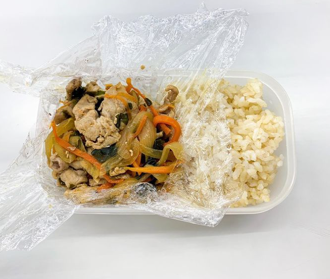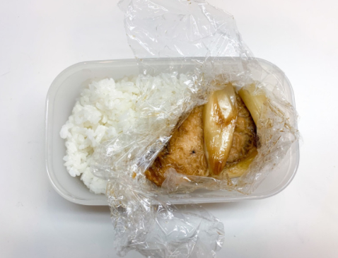 また中身といい合理性を重視しているようで、洗い物を減らす目的で容器にラップも敷いているのが見られます。