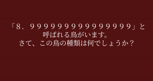 問題の鳥は、9に少し満たないので「9弱」です。9弱だけに「孔雀くじゃく(9弱)」が答えになります。