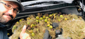 修理工場で車体の下にあるプレートを外すと、取り切れなかった残ったクルミ床に転がったそうです。ごみ箱の半分がクルミで埋まったというから相当な量です。インジェクターのホースに傷がついているようなこともなく、掃除をするだけで済んだというから夫妻も安心したでしょう。今回の件を通しクリスさんはフェイスブックへの投稿で、車を外に止めるなら、時々はボンネットの下を確認することとアドバイスを送っています。