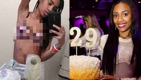 これまでにも計8回ほどの手術を受けた彼女は、尿バッグを腹部にぶら下げたまま生活しなければなりませんでした。