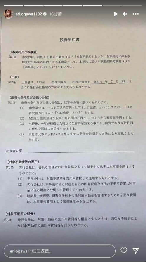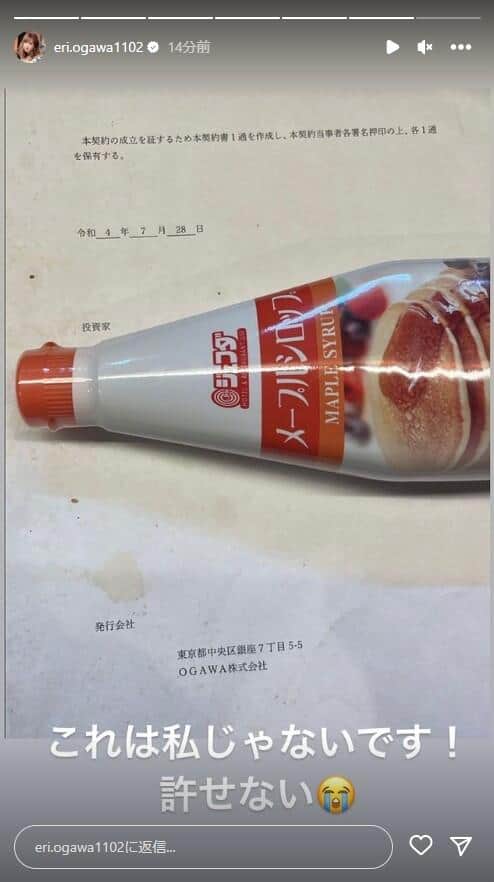 契約書類にはエンリケさんの本名の苗字である小川が入っている「OGAWA 株式会社」と書かれたものを公開しました。