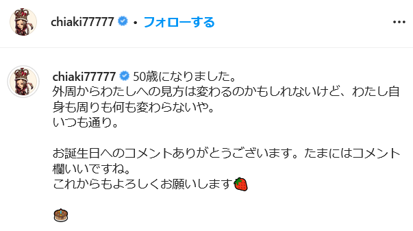 10月26日、インスタグラムで誕生日を迎えたことを報告しました。みなさんは何歳だと思いますか!?