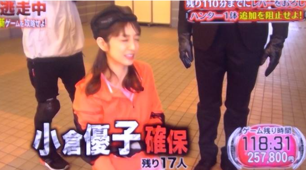 建物内で階段を上ってきたハンターに確保されることに。小倉さんは「捕まった…」と悔し気な表情を浮かべ、残り118分で脱落となりました。