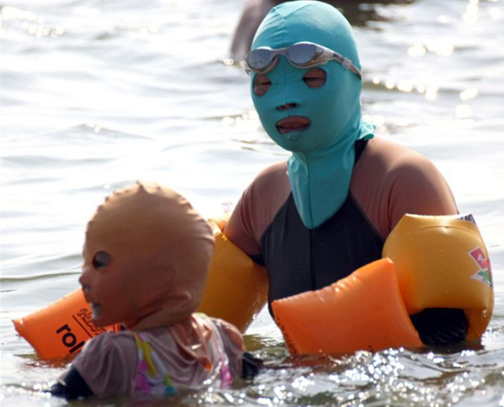 実は2人は11月15日に金門島から台北に来た際にユニー航空を利用。客室乗務員が救命胴衣の説明をしている際に、「これは海水浴に使える」と、ササっと座席下から取り出し、持ち込んでいたリュックサックに詰め込んでいたのであす!すごい発想・・(笑)