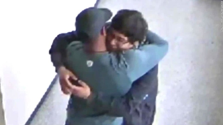 ロウさんは廊下に出て両腕を生徒の身体に回すと、背中をさすり、引き寄せて抱き締めました。2人はそのまま廊下に座り、間もなく到着した警察が生徒を逮捕しました。