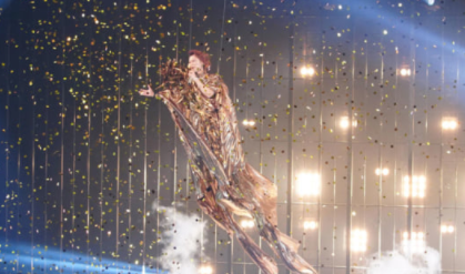 太ももがあらわになったセクシー衣装を披露すると、最後は金の衣装に着替え、ワイヤーを使ったフライングアクションを見せつけました。
