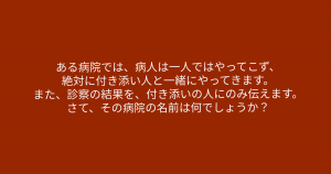 さて、その病院の名前は何でしょうか?