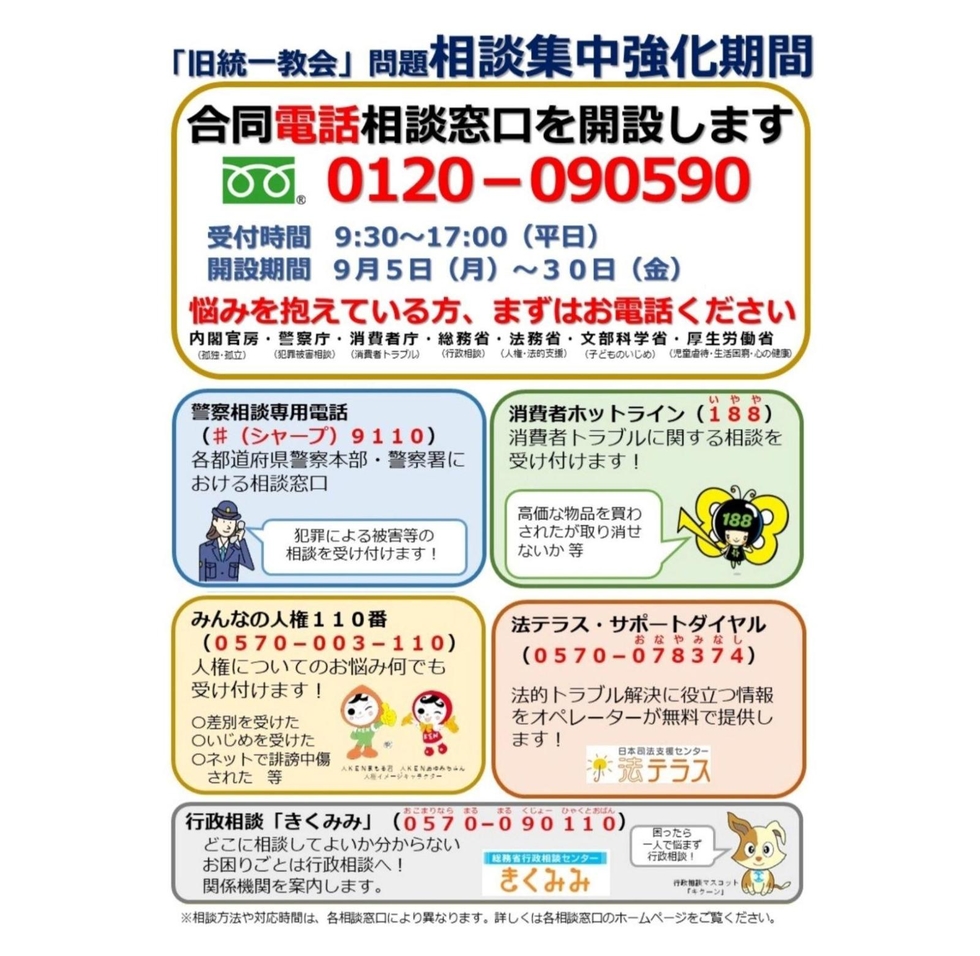9月30日、消費者庁 消費者庁・新井ゆたか長官より、47都道府県にて旧統一教会の関係者が消費者センターを訪れ「相談情報を教えてほしい」などと要求をしていたことがわかりました。