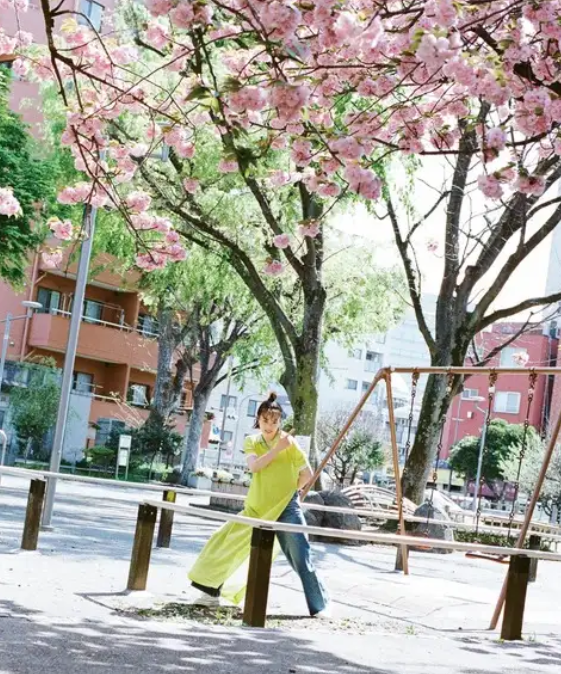 撮影にはフィルムカメラが使用され 広瀬さんが公園の遊具で遊ぶ写真などを撮り下ろしたカットなども収められています。