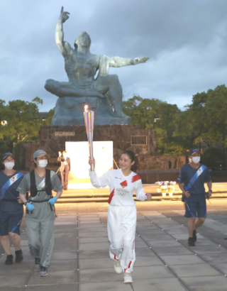 会場となっていた平和公園内では、新型コロナウイルス感染対策のため無観客で行われました。石原さんは、無観客の平和公園で、トーチを掲げて平和祈念像の前をゆっくりと駆け抜けていきます。また、自身が出会った被爆者に思いをはせながら走ったといい「(核廃絶や平和の発信を)ライフワークとして、自分にできることがあれば取り組んでいきたい」と話していました。