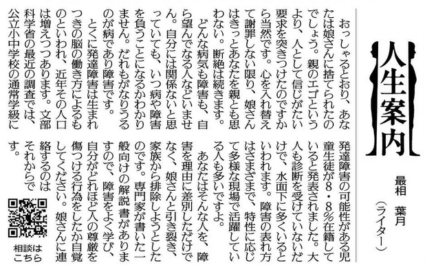 最相氏は発達障害について学ぶ必要があることを指摘しました。