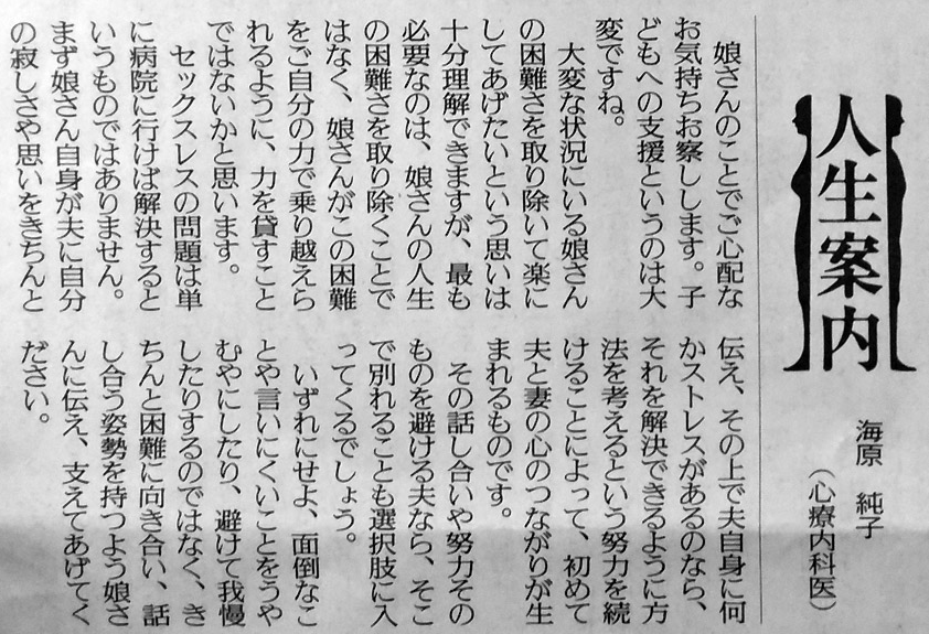 心療内科医の海原先生です。どんなアドバイスが送られたのでしょうか。