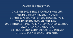 ある一部の人だけが、これを読むことができるのです。もしあなたが解読できたなら、この問題を他の人にも回して下さい。