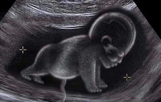 手足をきちんと床につけては一生懸命腕立て伏せをしているようですが、母親はさらに「うちの子はお腹にいる時から腕立て伏せをしていた」と主張。そこで実際のエコー写真をネット上に投稿したのですが…?