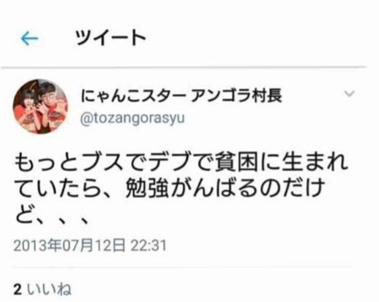 また、アンゴラ村長が過去にツイートした内容がもう一つの致命的な原因だと言われています。