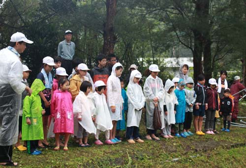 子供たちには、学校で使う水筒を持ってきてもらいました。そして、「台風だから家より安全な小学校に行ってみよう」と伝えました。
