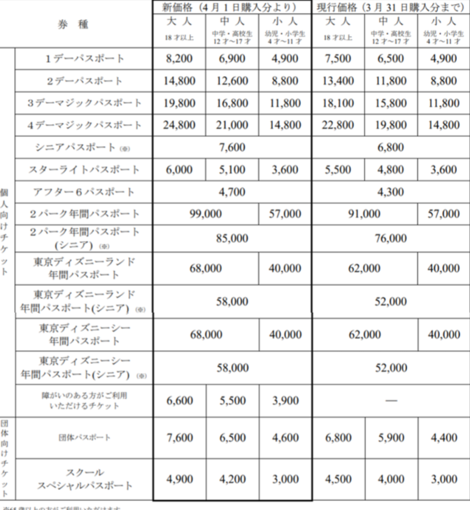 一連の値上げは中学生以上が対象のパスポートになっており、4歳児から小学生までを対象とする入場券は現在の4900円のまま変わらないとのことです。ですが大体のチケットは値段が上がるに違いありません。
