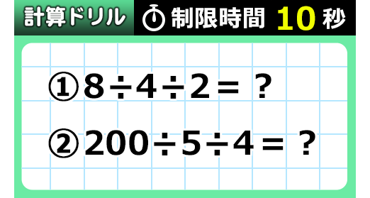 大人でも間違いやすい割り算問題!あなたはちゃんと解くことが出来ますか? 今回ご紹介するのは脳トレクイズです。本日は計算問題に挑戦! Google Google ADVERTISEMENT あなたはわかりましたか? それでは答え合わせに行きましょう! Google 答えは、、、 「1問目…1 2問目…10」。 ADVERTISEMENT Google あなたは間違えずに解けたでしょうか! Google [著作権者VONVON /無断コピー、無断転載および再配布禁止(違反時の法的措置)] ADVERTISEMENT