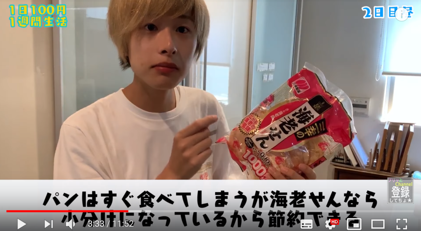 問題動画に関しては、しょうちゃんが出演している「使えるのは100円のみ!1週間100均のものだけ食べて人は生活できるのか?」というタイトルの動画です。