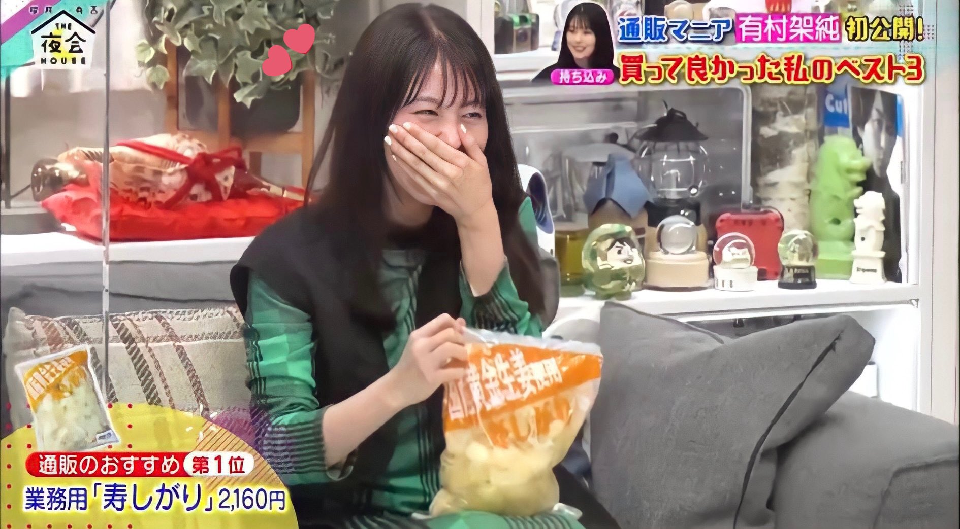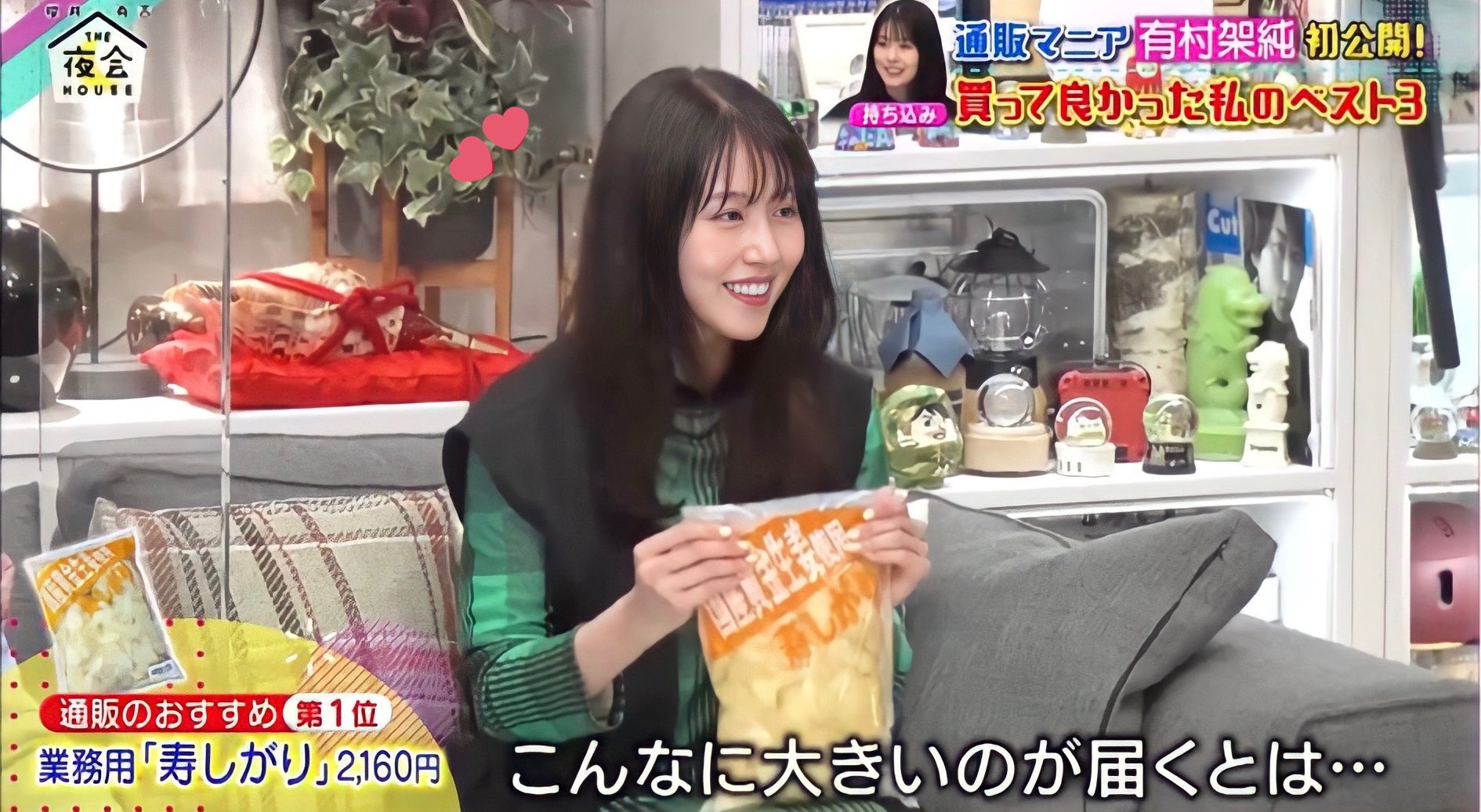 有村さんはもともとお寿司が好物で、コロナで外出ができないこともありお寿司がしばらく食べれない時期があったようで「せめてガリならネットで買えるんじゃないかと思って」と購入したことがきっかけだそうです。共演者の有吉さんに「寿司あってのガリだからね」と突っ込まれていました。