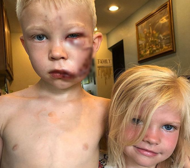 その後、猛犬を妹のそばから追い出したブリーダーくんは、妹の手を握って現場から逃げ出すことができたのでした。ブリーダーくんはすぐに病院に運ばれ治療を受けることができました。猛犬からくらった傷が思ったより深刻で、顔と頭をなんと90針も縫わなければならなかったのです。