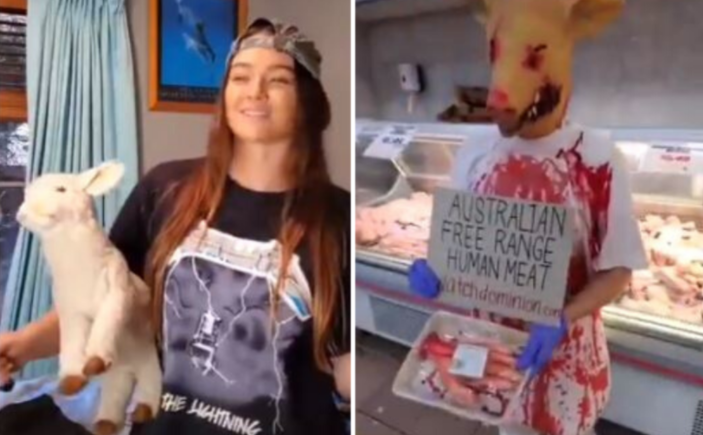 豪州のあるショッピングモールの肉屋の前でヴィーガン(完全菜食主義)活動家が1人デモを行って話題になっています。