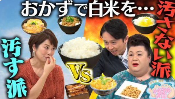 2人は卵かけご飯などの例外はあるとするも、基本的にはお茶碗に入った白米を汚さないで食事したいというナシ派だそうです。